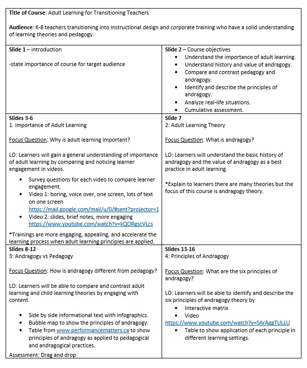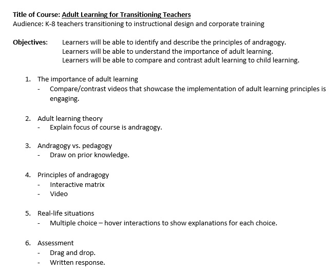 Problem: K-8 teachers that are transitioning into instructional design and corporate training need to learn about adult learning theories. There are so many theories about how adults learn. Where should they start?